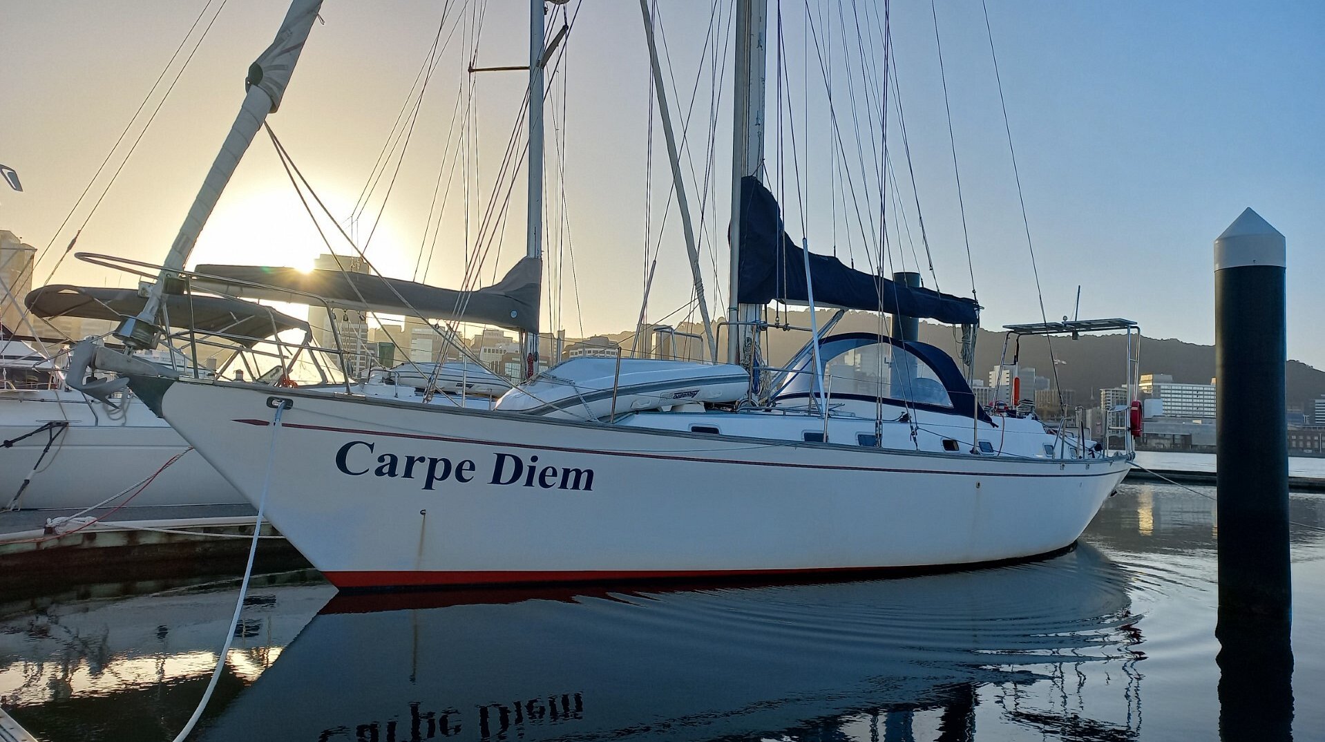 A well proven, capable, cruising vessel or ideal live aboard, Includes transferrable down town Wellington Marina berth.