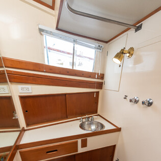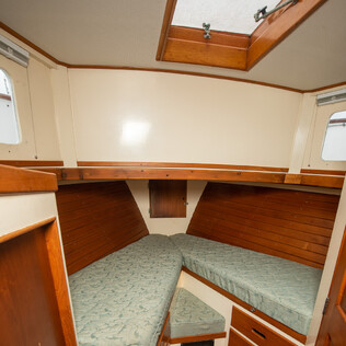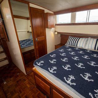 The berths have been placed at either ends of the ship, creating an ideal set up for dividing guests or family. Each cabin with a separate head and the aft cabin also featuring a bath.