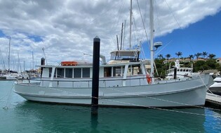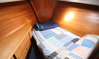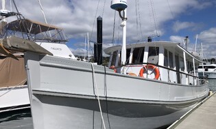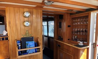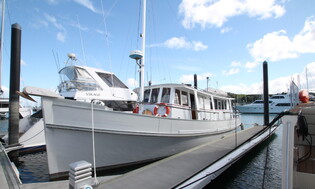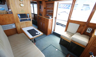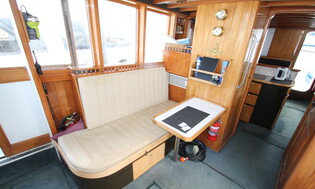 Detroit 6/71 diesel (rebuilt 2006), cruise 8.3kts at a meagre 13lph, 2600 litre fuel capacity.