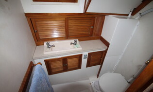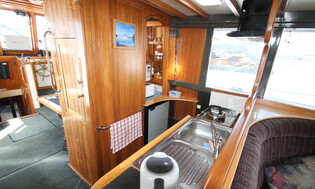 Well equipped galley includes near new 2 burner gas stove with oven, microwave oven, near new 2 way fridge & engine driven/240v freezer.