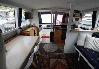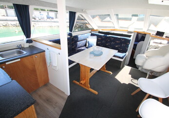 There is accommodation for up to 6 with two heads, a spacious galley including a large gas stove with oven, fridge & freezer. Handling is greatly assisted with the bowthruster and comfortable Winter cruising is assured with its 5kw ducted diesel heating. Other equipment includes a remote electric capstan and a near new Nautilus 3.1M dinghy.