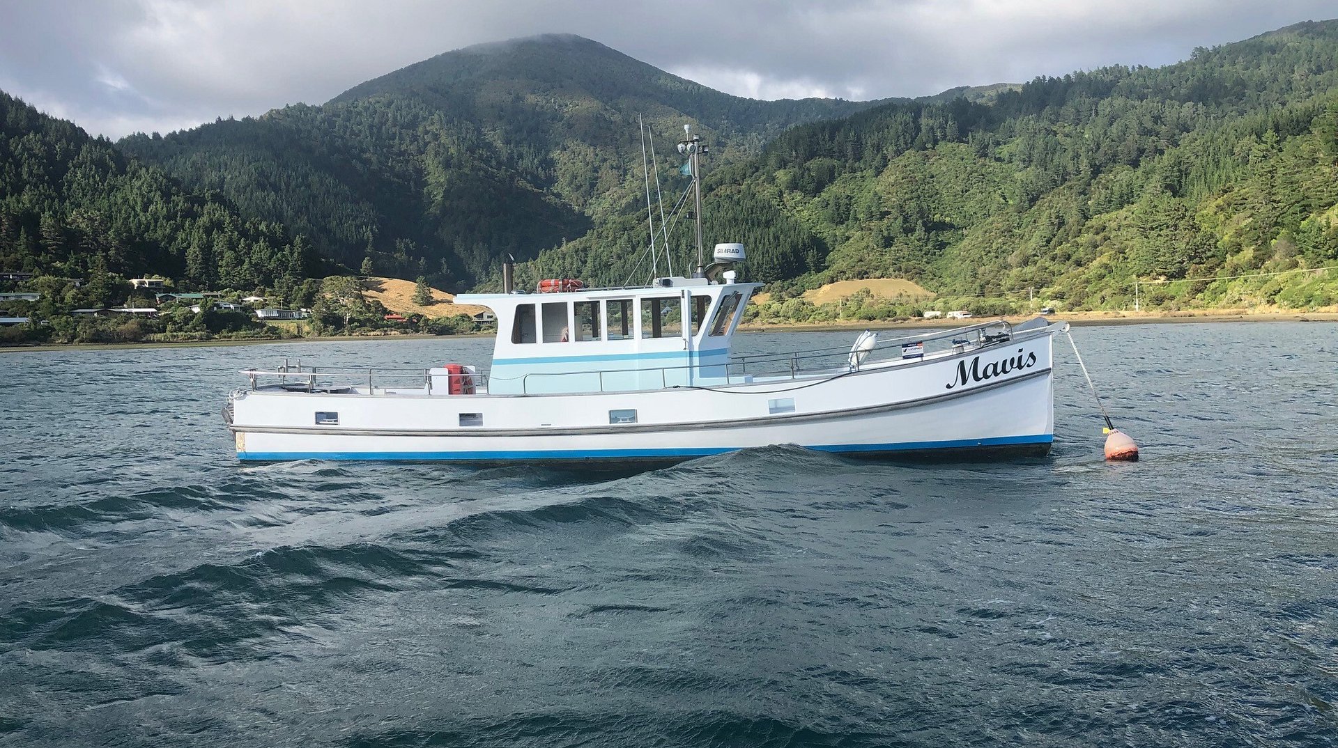 Classic Ernie Lane launch ‘Mavis’ This well-presented vessel is now reluctantly offered for sale with recent repaint and antifoul. The hull & engineering were extensively rebuilt around 2004, this included splining the Kauri hull.