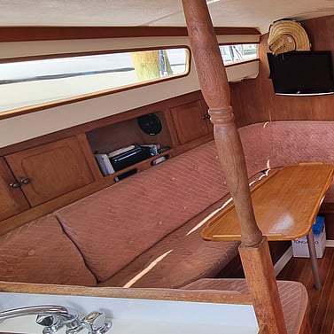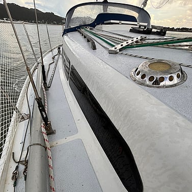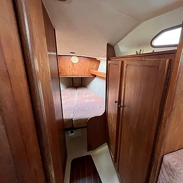 Rigged as a masthead sloop, the setup is simple and effective, typically comprising a mainsail and overlapping headsails such as a working genoa. This configuration provides versatility across a range of conditions, with straightforward sail handling and good balance when reefed. A large Sock deployed Gennaker for easy handling making summer cruising a lot of fun.
