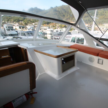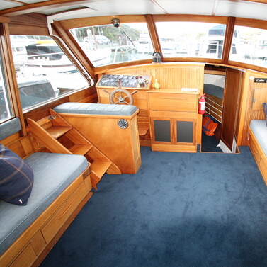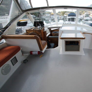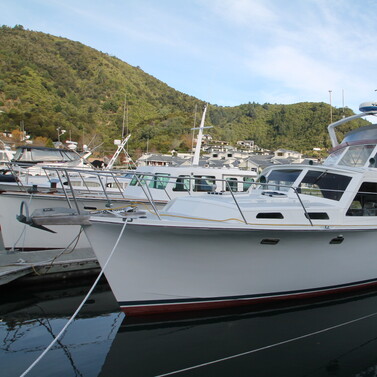 Step aboard 'Acheron', a 13.5m Owen Woolley classic that proves good design never goes out of style. Built with Kiwi craftsmanship and powered by twin overhauled diesels, she cruises comfortably at 10 knots with the reliability and control only twin engines can deliver.
