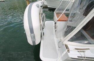 GPS, sounder, autopilot, VHF radio. RIB on Weaver davits, cockpit sink, large boarding platform.