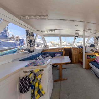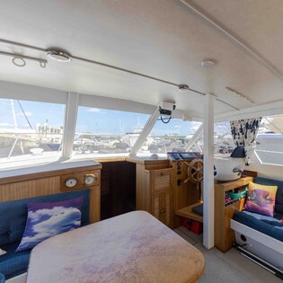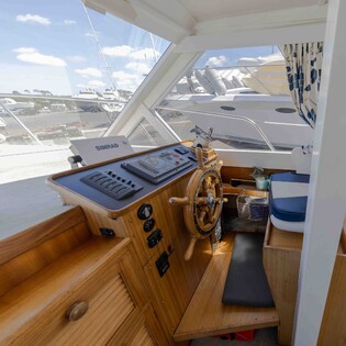 Finto Magic is a semi reconditioned Pelin challenger, she provides a fantastic opportunity for families looking for a good entry level launch. Game rigged with a huge cockpit & easy access ice box she is the perfect weekend fishing boat, however with the interior refurb she offers great hospitality warmth and space for entertaining.