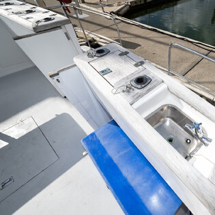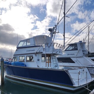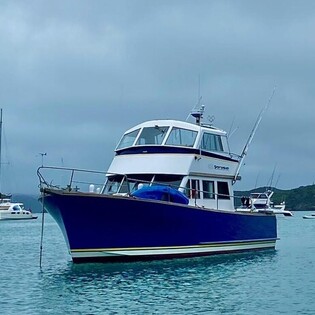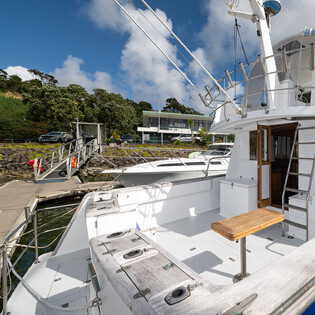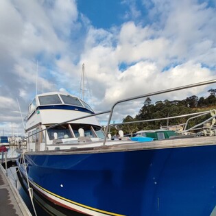 Constructed in double-diagonal kauri and glassed over hull, she’s solid, dry, and proven on our coast. Painted just over five years ago and freshly antifouled in March 2025, she presents well and runs even better, powered by a dependable Cummins 370hp (1,800hrs, serviced Oct 2025) swinging a 4-blade Tiger prop. Cruising comfortably at 9–10 knots with 15 knots up her sleeve, she’s easy to handle thanks to the bow thruster and has all the right gear for extended time aboard; including a large engine-driven freezer, Garmin navigation screens, Furuno radar, and autohelm. With two cabins offering a double and six single berths, she’s set up perfectly for family cruising, fishing missions, or coastal adventures. Kingfisher is a well-kept, no-nonsense NZ build ready for her next owner.