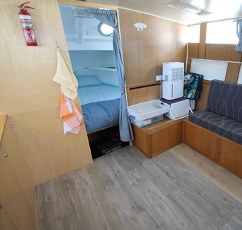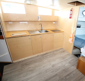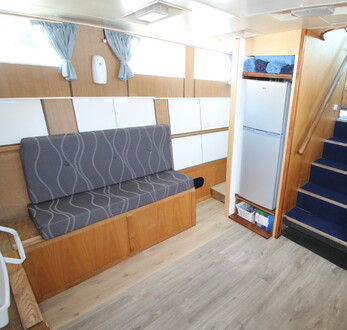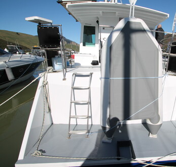 Due to the owner’s ill health Jasiri is reluctantly being sold! Pelin Empress 13.4M cruising launch, ‘Jasiri’. Detroit 71 series diesel (low hours), shaft drive, cruise 8kts. 8 berths, 2 x separate sleeping cabins, (1 x double currently set up as a workshop), toilet with holding tank, roomy galley with 2 burner gas stove, 24v fridge & freezer.