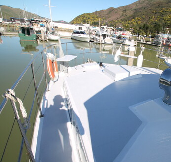 This huge volume vessel has massive fuel capacity and is an ideal for living aboard or long distance cruising. Price includes the ability to transfer the sought after Marina berth to a new owner. Well priced and well worth closer inspection.
