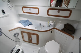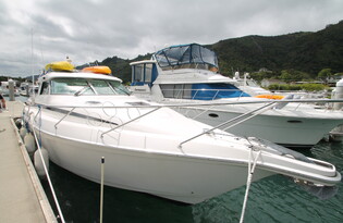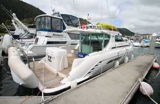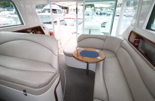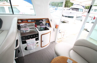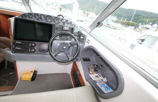 A bow thruster, coupled with twin Mercruiser diesel engines with low hours, cruising at 22 knots, this boat is easily manoeuvrable.