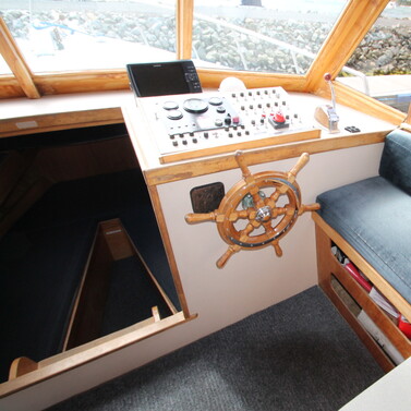 Handling "EJ" is effortlessly smooth, thanks to its generous walk-around decks and an expansive cockpit that enhances every journey on the water. At the heart of its performance lies a robust John Deere diesel engine, celebrated for its outstanding reliability and fuel efficiency. "EJ" stands ready for your command, compliant with Safe Ship Management for up to 12 persons.