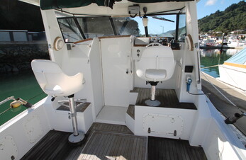 Featuring a standard Wavecrusher layout with 2 single berths forward and extra accommodation in the saloon, electric toilet & shower. A spacious mid galley is equipped with a 2 burner gas stove & oven and 12v fridge. Electronics include Garmin GPS/fishfinder and a Pioneer sound system.